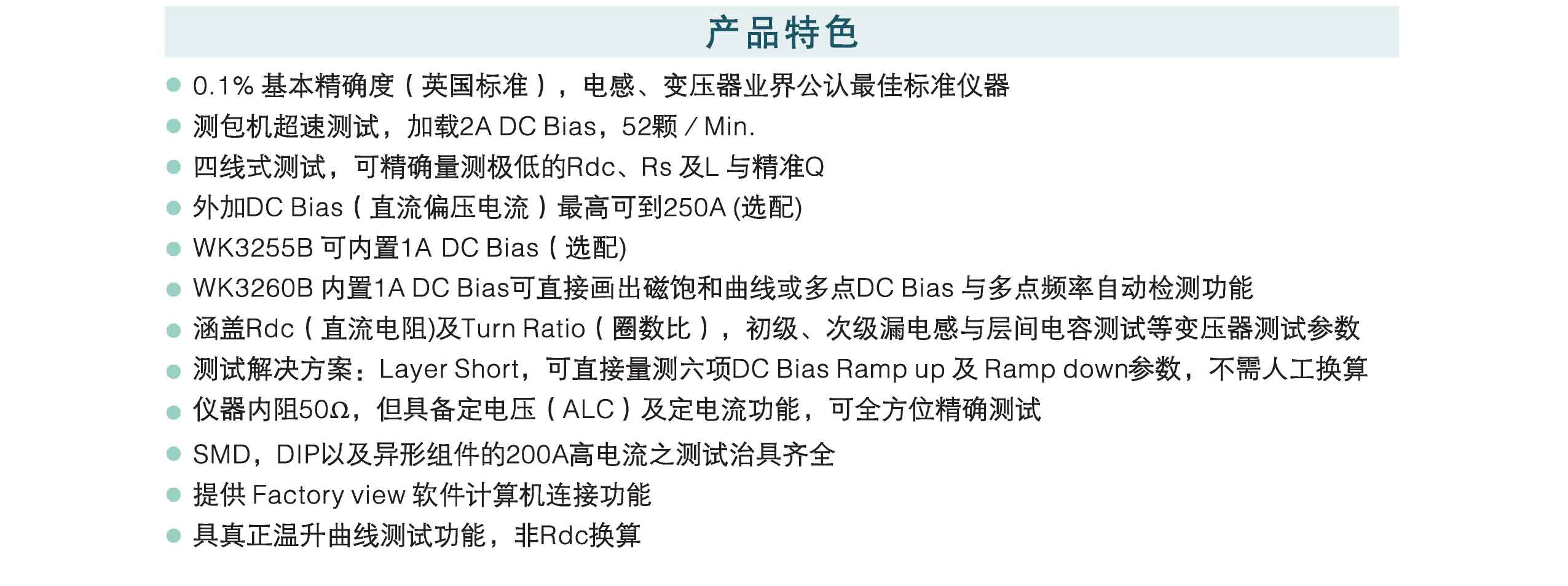 ●0.1%基本精度(英國標準),電感、變壓器業界公認*佳標準儀器